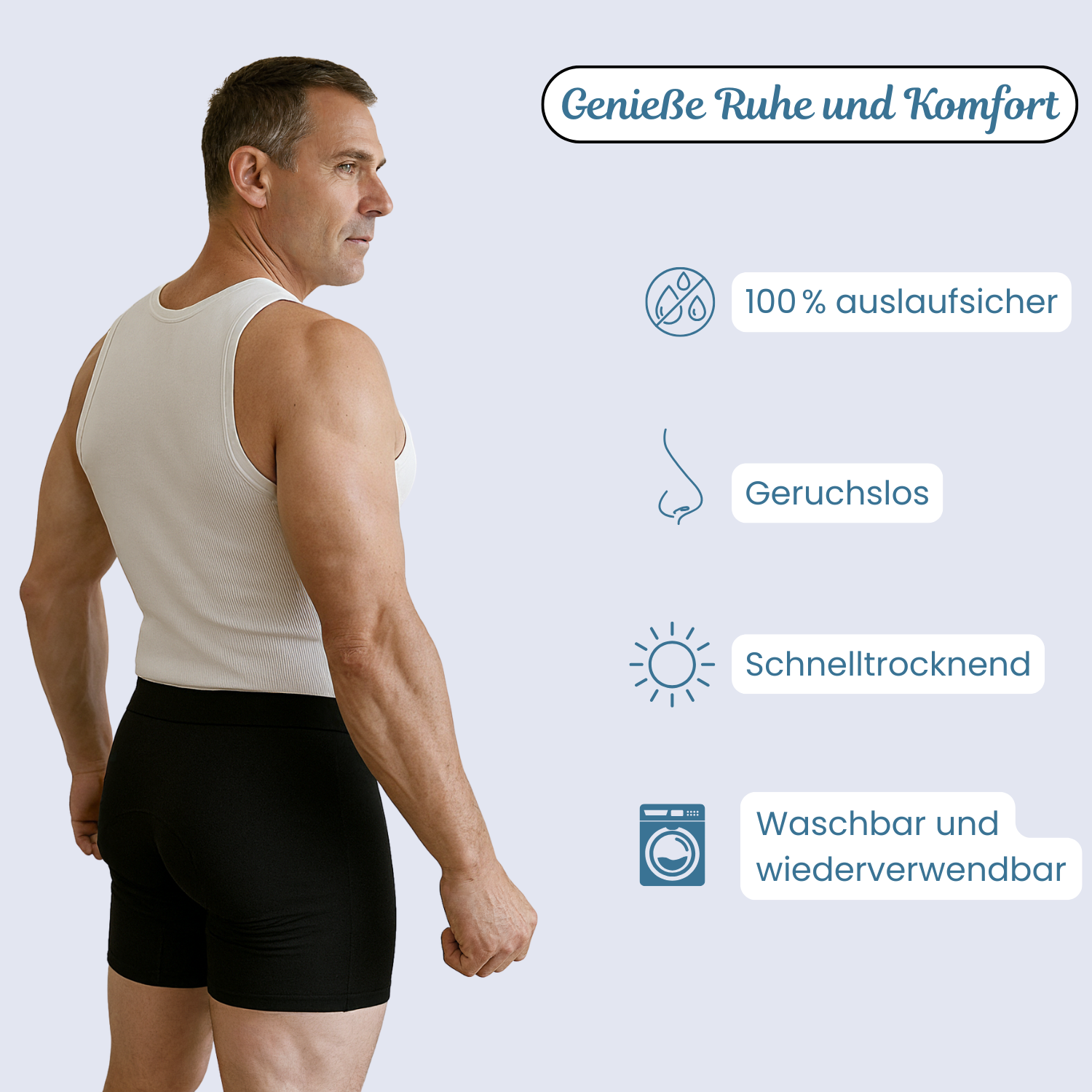 Lass Harnverlust oder leichte Inkontinenz dein Leben nicht bestimmen – Ben's Boxers ist die Lösung, die du brauchst.